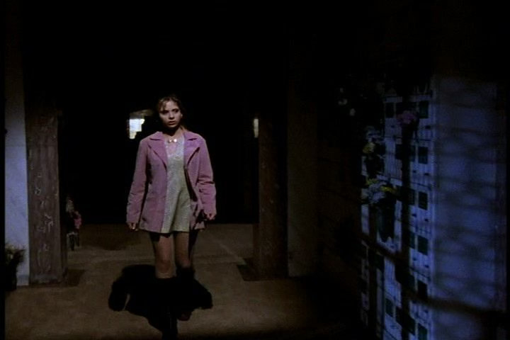 Buffy slays a vampire in a cemetery, then Giles pops up and reviews her performance. He notices the vampire dropped a ring, and thinks it’s important.