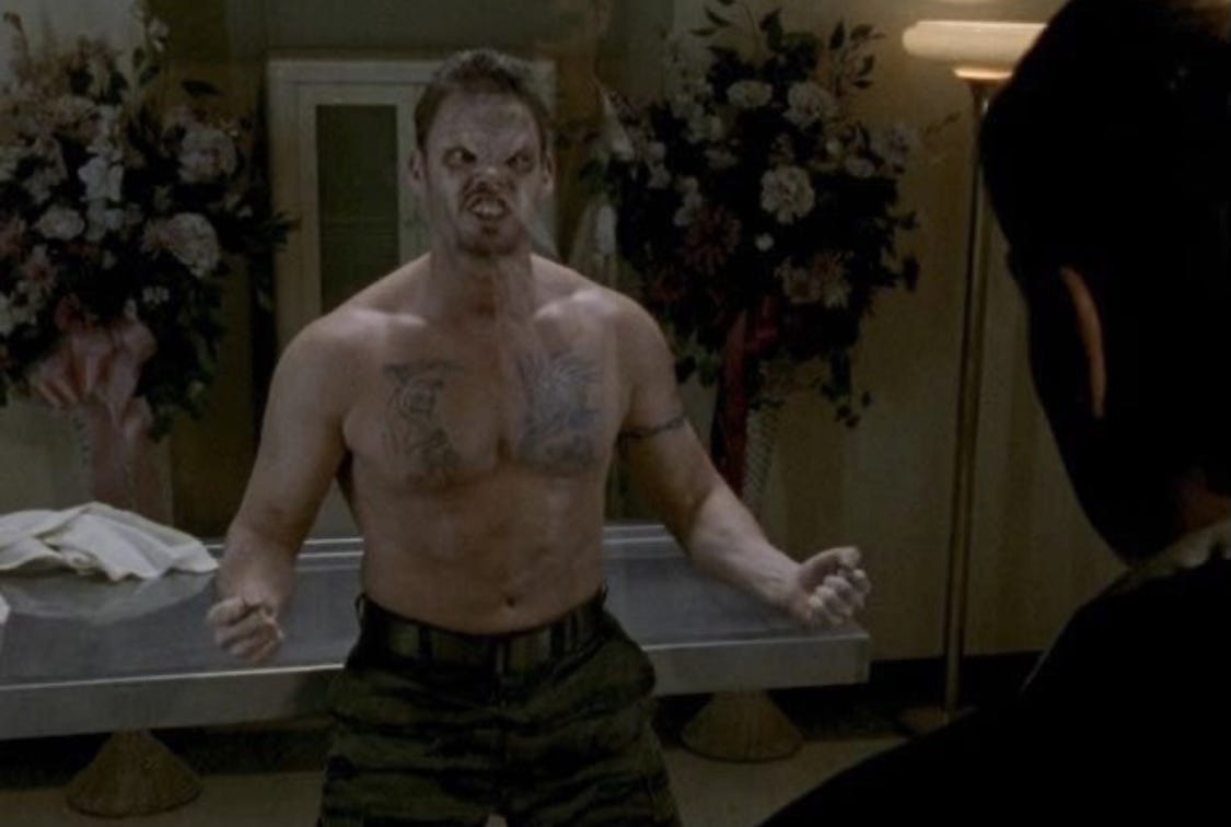 Buffy finds the room Giles was in, in disarray, with the window bars bent. Then one of the corpse drawers opens, and out comes Giles.