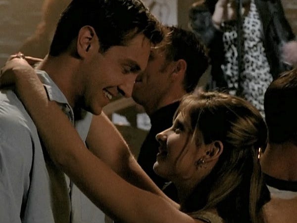 Buffy gets to The Bronze where everyone is slow dancing. Oh no, Cordelia got to Owen first.