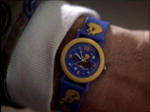 Xander looks sadly at his own Tweety bird watch. Yeah, you’re not as cool as Owen, sorry.